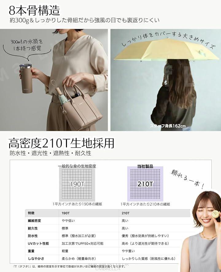 [3.] オールシーズン活躍する多機能傘 - 高密度210T生地で雨をしっかり弾く撥水性能。