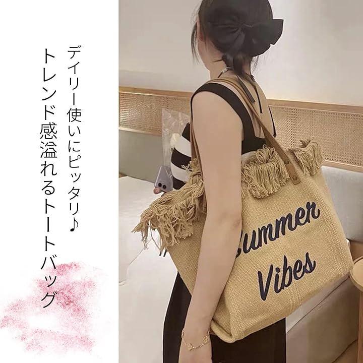 「シンプルでおしゃれなトートバッグ」キャンバストートバッグの口にあしらったフリンジデザインが、可愛さを引き立てています。