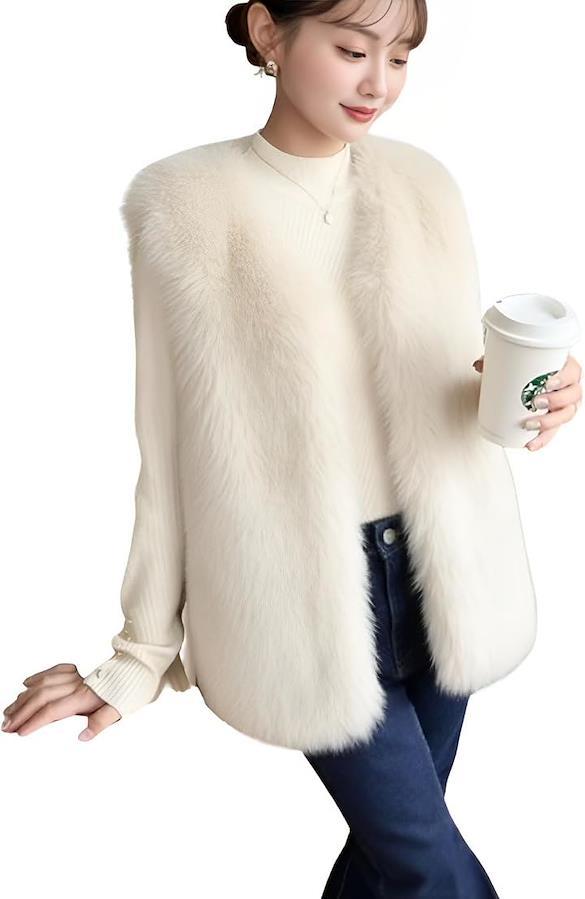 軽くて柔らかなファーベストが優しく包み込み、着るだけで上品な印象になるレディースファーベスト。。