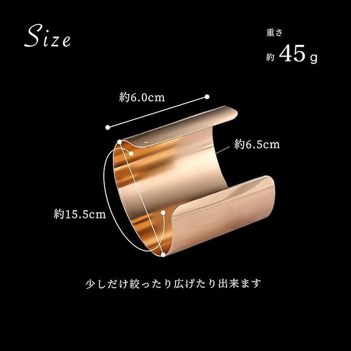ゴールドのバングルは留め具のないC型デザインのバングルだから簡単装着、脱着もラクラク。両端を軽く絞ったり広げたりすることで、手首のサイズに合わせて微調整が可能です。
