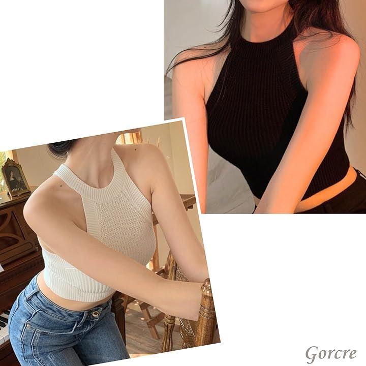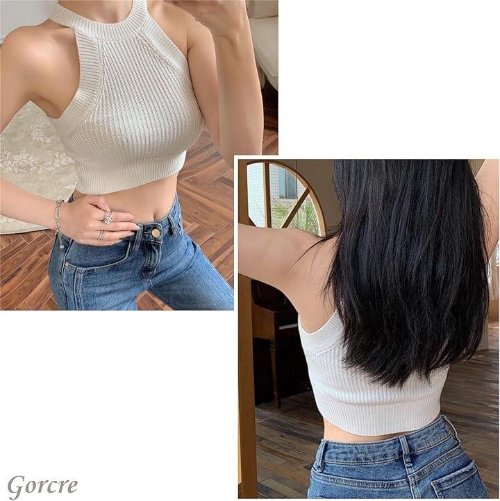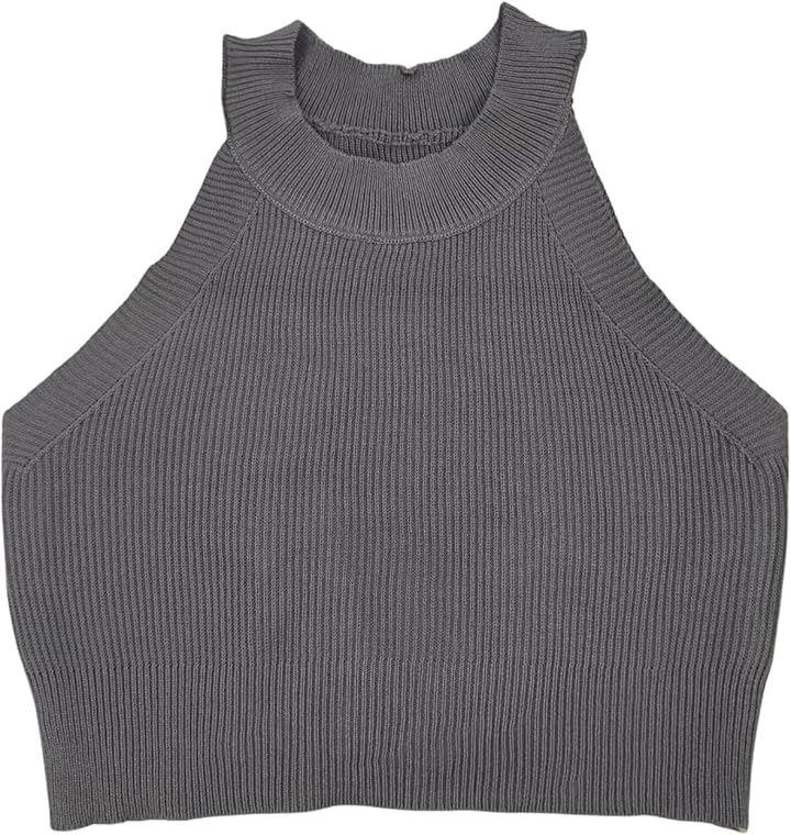 Women's Halter Neck Tank Top, Short Cropped, Ribbed, Summer Knit, Sexy