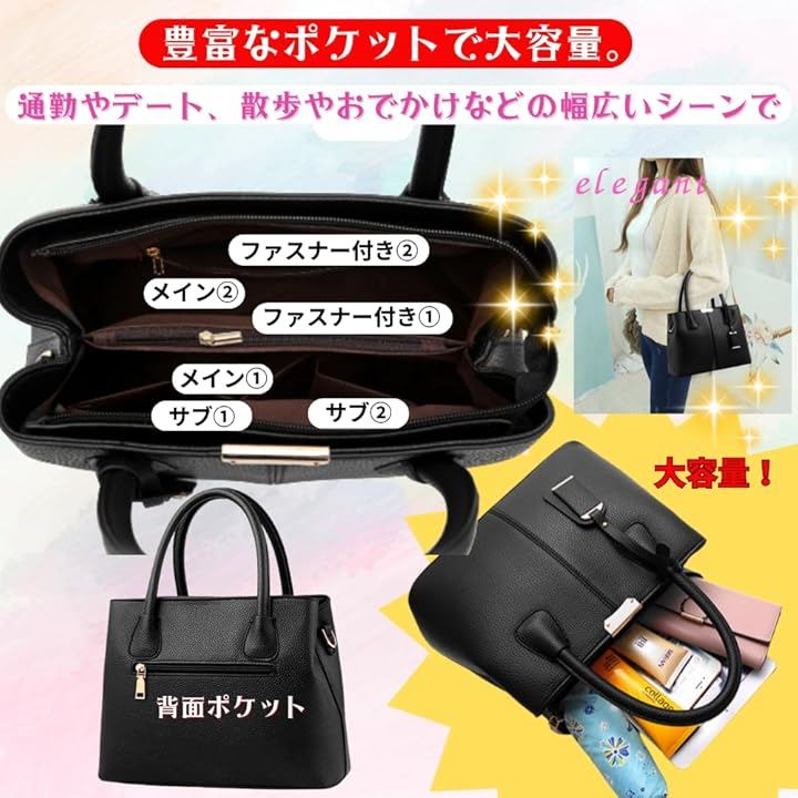 豊富なポケットでお財布や小物、化粧品、折りたたみ傘など女性の必需品は収納OK。癖のないシンプルなデザインだからどんなファッションにも合わせられます。