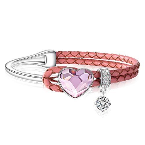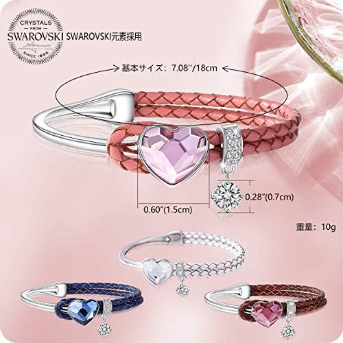 【製品仕様】基本サイズ:7.08''/18cm。優雅なブルー、キュートなピンク、大人っぽいブラウンを展開しており、お好みに合わせてお選びください【快適な着用感】上質なレザー素材とプラチナを採用しており、素材の組み合わせによって一味違う風合いが楽しめます。金属部分はプラチナを採用したため、金属アレルギーの方や敏感肌の方も気楽にご着用いただけます【スタイリッシュなデザイン】ハート型のクリスタルがメインになっており、おしゃれ感をさり気なくアップさせます。手首が動くたびにゆらゆら揺れる菱形のクリスタルが相まって、手元を大人っぽく爽やかに彩ります。年齢や季節問わず、普段使いはもちろん、デートなど特別な日にも適用します【高級感溢れるクリスタル】SWAROVSKI製100%純正クリスタルを採用したため、曇りに強くキズが付きにくい。耐久性を実現するとともに、上品な輝きで程よい高級感が漂います。Tシャツなどカジュアルコーデはもちろん、フォーマルな洋服にも合わせやすく、女性の魅力を一段と格上げします【プレゼントにぴったり】自分へのご褒美、お友達と色違いのお揃い、誕生日、記念日、クリスマス、母の日、ホワイトデーなど大切な方への贈り物に最適です。ギフトパッケージ付きで、喜ばれるプレゼントとしておすすめです