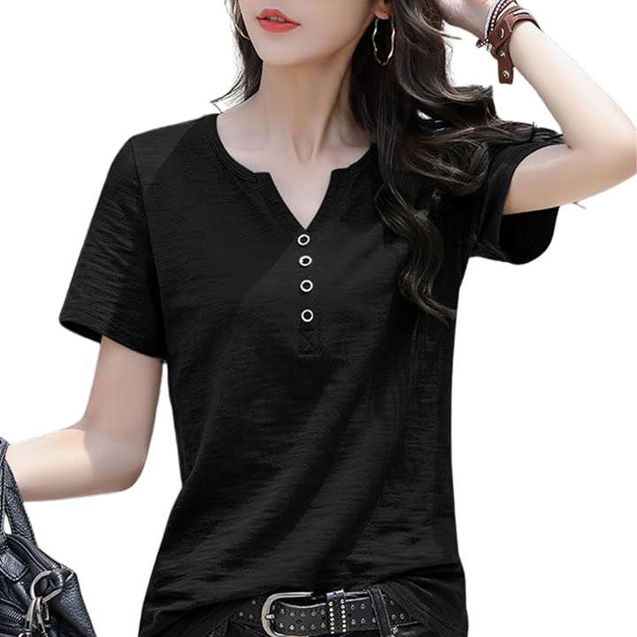 ・春夏秋のデイリーコーデに欠かせない、やわらかい綿100%のVネックトップスで快適な着心地を実現。