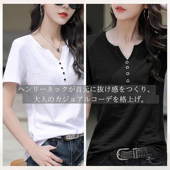 ・春夏秋のデイリーコーデに欠かせない、やわらかい綿100%のVネックトップスで快適な着心地を実現。