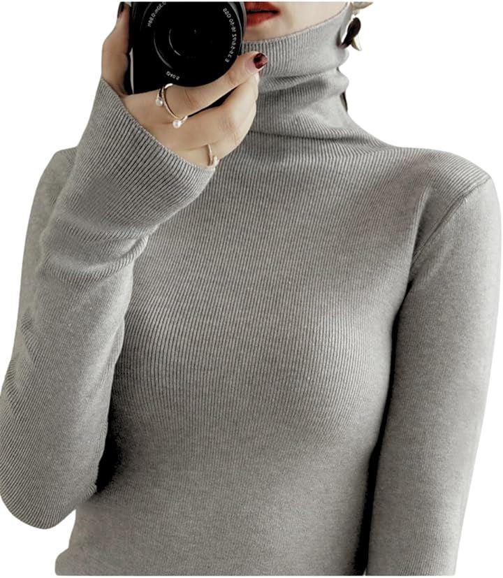 着るだけでスタイルアップし、スマートな印象を与えるハイネックセーター レディース 薄手。