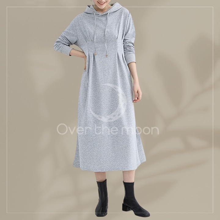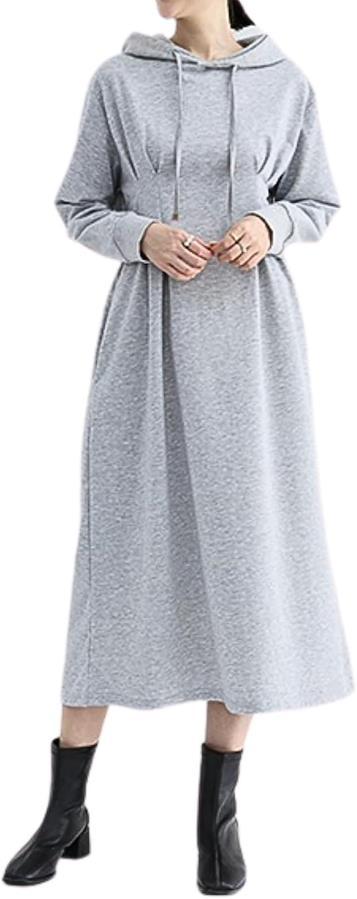 ハイウエストでスタイルアップ効果〇 パーカーワンピース バスト下からのウエスト切り替えデザインで、脚長、着痩せ効果も抜群。