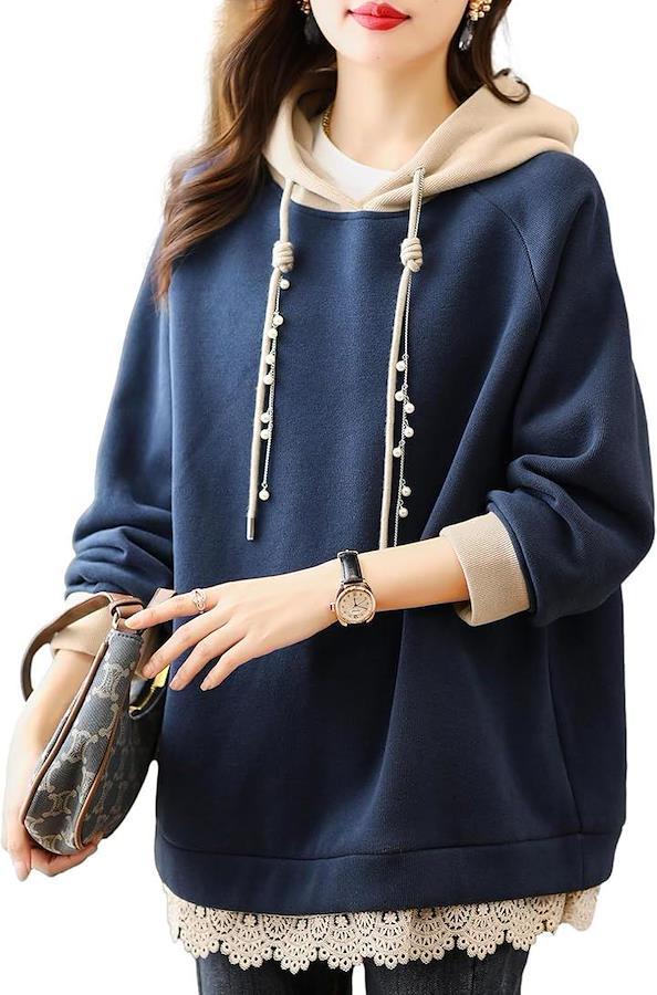 「上品で繊細なディテールが光る」 裾に施された繊細なレースが、上品でフェミニンなパーカー。