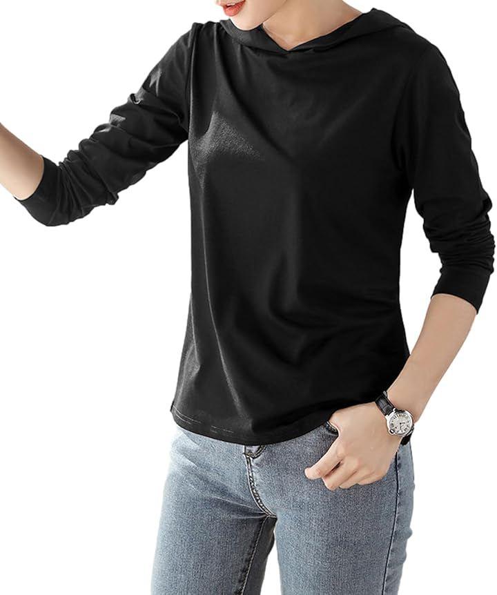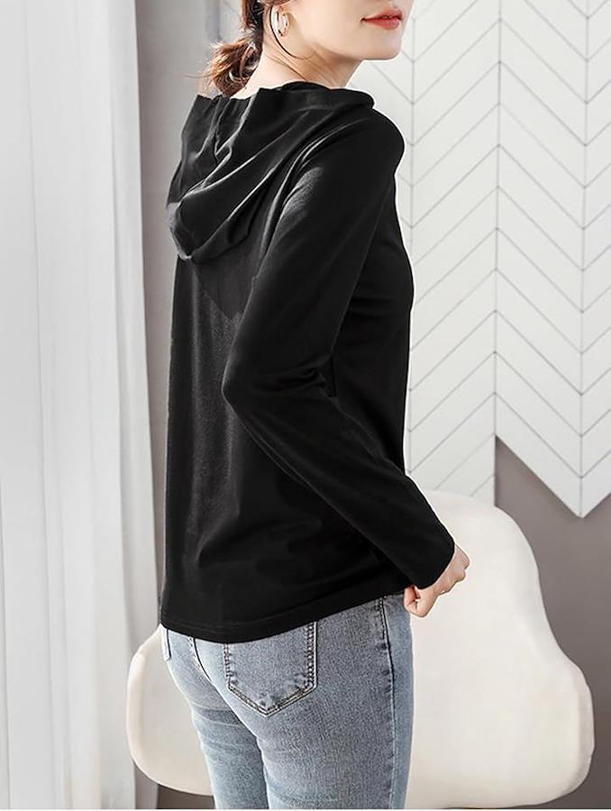 シンプルで着回しやすいフード付きカットソートップス。