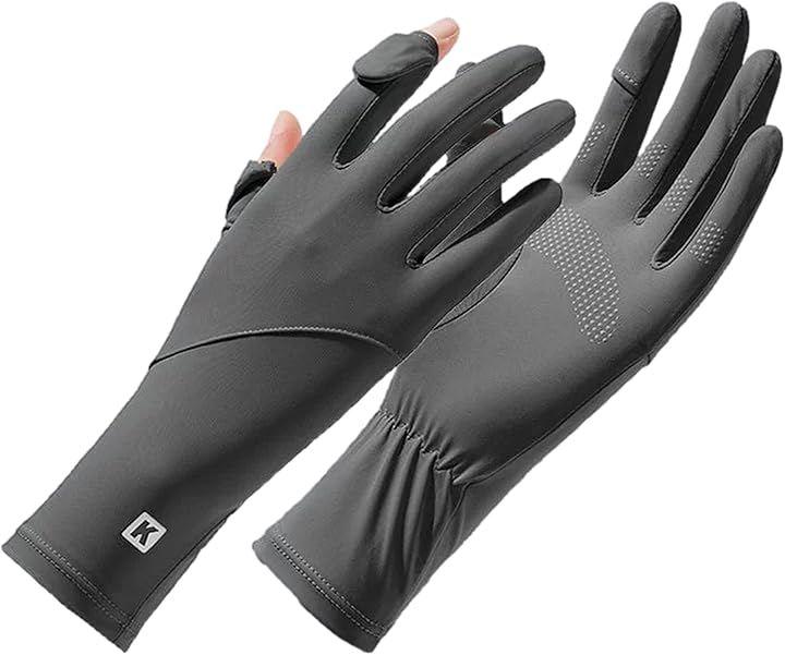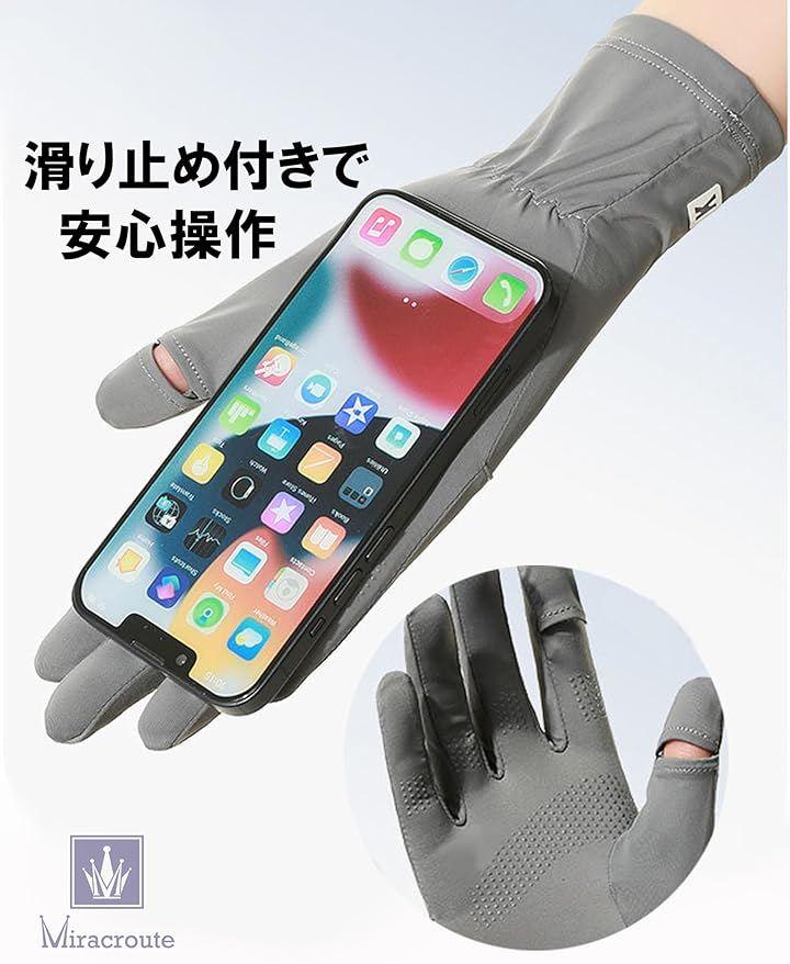 親指、人差し指が出せるアイスシルク生地の接触冷感手袋です。