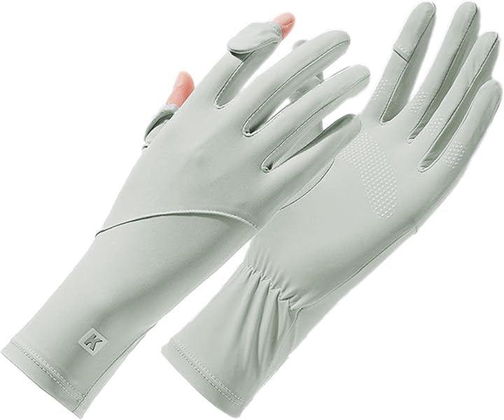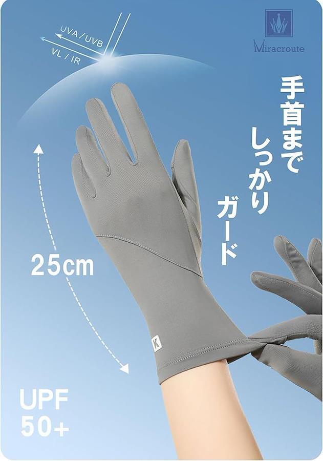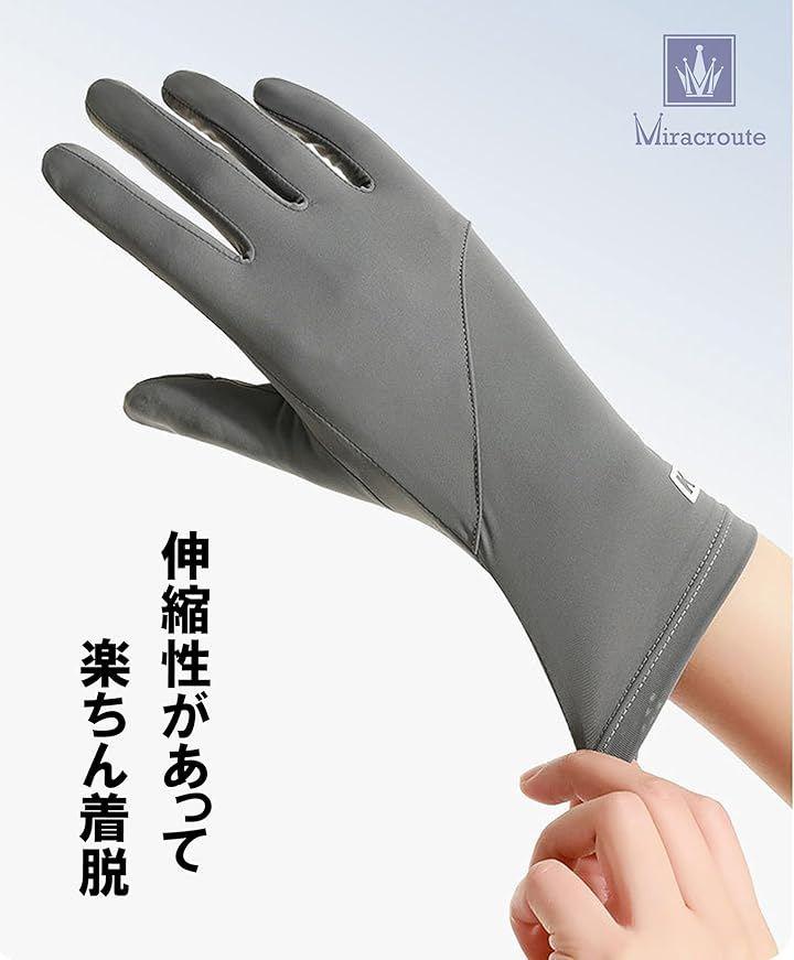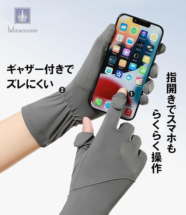 親指、人差し指が出せるアイスシルク生地の接触冷感手袋です。
