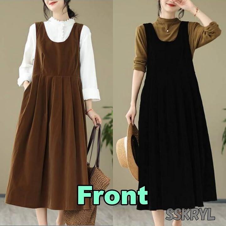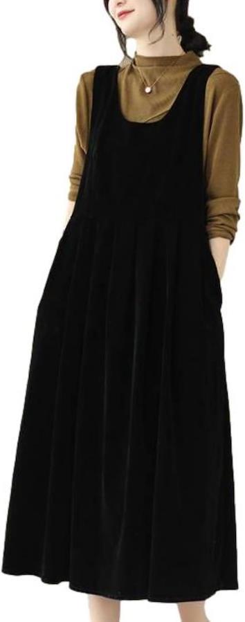 「素材」ベロア(ポリエステル)「カラー」ブラウン、ブラック「サイズ」M~XXL(*商品ページのサイズ表をご確認ください)「デザイン」ロング丈/フレア/ジャンパースカート「ネックタイプ」Uネック