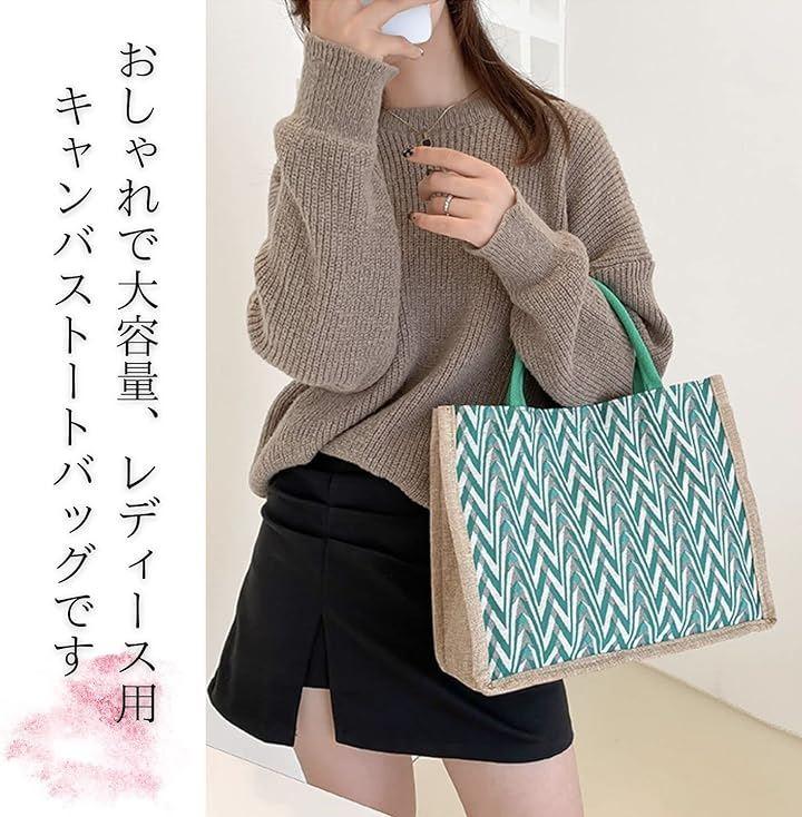 「シンプルでファッショナブル」おしゃれで大容量、カジュアル感たっぷりのデザインがあらゆるコーデに合わせやすい、レディース用キャンバストートバッグ。