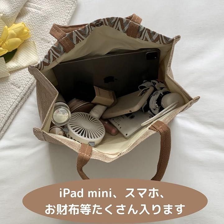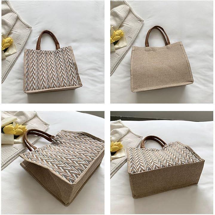 Women's Jute Tote Bag, A4 Size, 6 Colors, Embroidered, Large Capacity, Lightweight, Shoulder Bag, Interior Pocket, Linen, Shopping, Commuting, School, Eco-Friendly