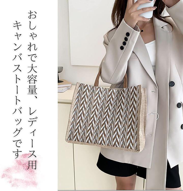 「シンプルでファッショナブル」おしゃれで大容量、カジュアル感たっぷりのデザインがあらゆるコーデに合わせやすい、レディース用キャンバストートバッグ。