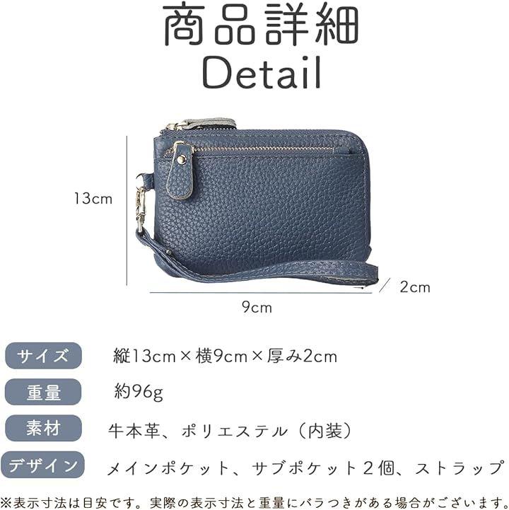 「カラー」ブラック、ブラウン、グレージュ、スモーキーピンク、スモーキーブルー、イエロー、グリーンティー「素材」牛本革、ポリエステル(内装)「サイズ」縦13.0cm x横9.0cm x厚み2.0cm「重量」96g