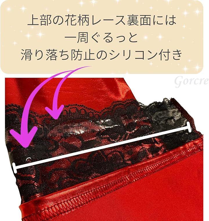 上部のレースに滑り止めシリコンが付いていてズレ落ち防止♫光沢感あるメタリックなニーハイストッキングです。