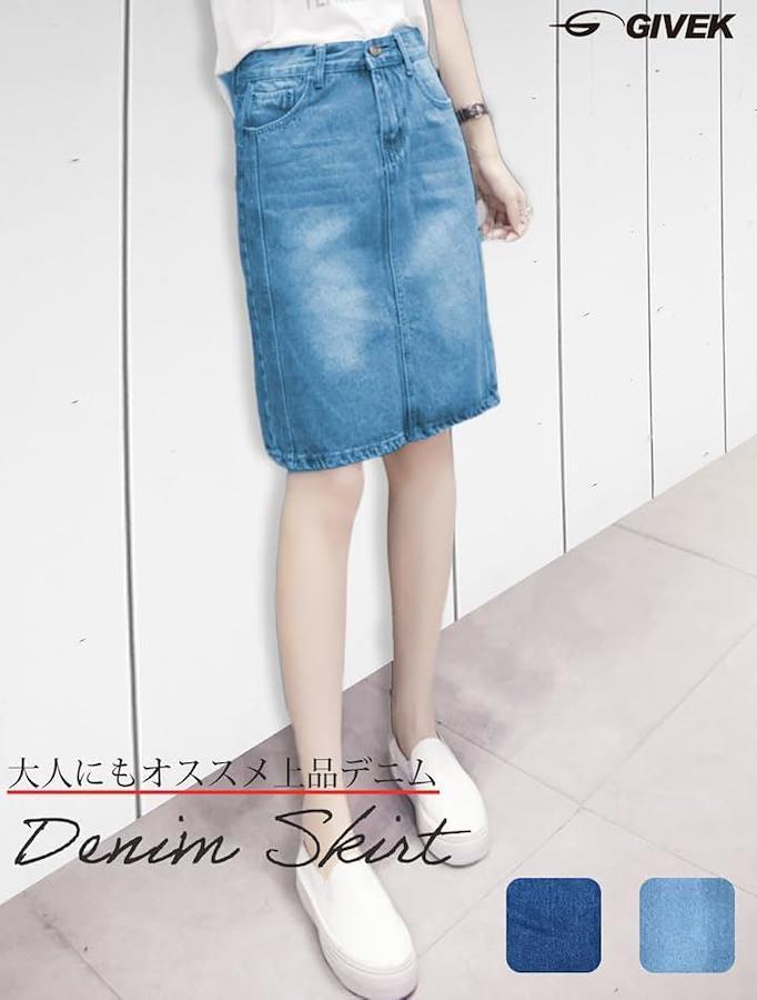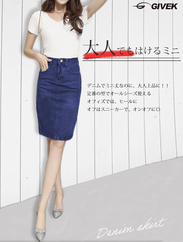 「美シルエットを叶えるタイトライン」 程よくボディラインにフィットし、女性らしい曲線美を引き立てるタイトタイプの膝丈デニムスカートです。