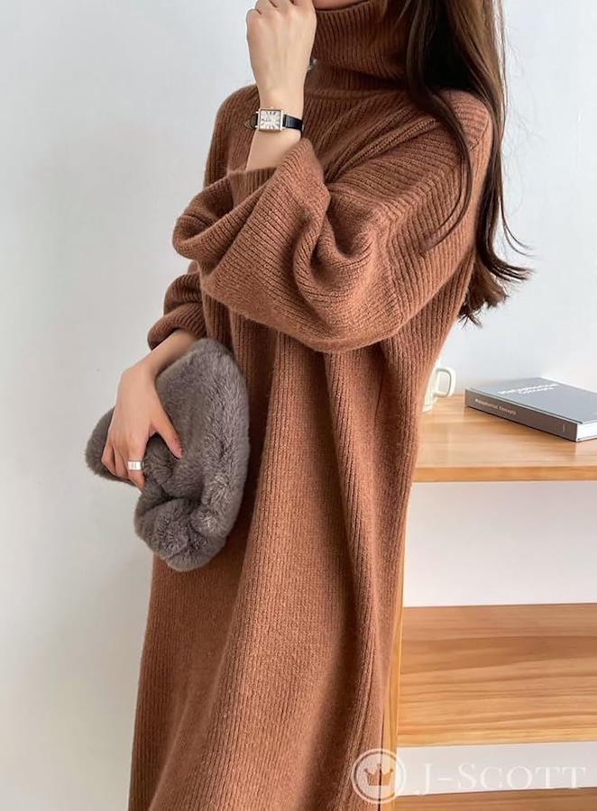 「温もり溢れるリラクシーなニットワンピース」 心がゆるりとほどけるような優しいムードに包まれてー。