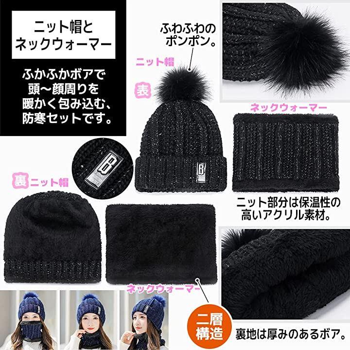 ぬくもりに包まれる裏起毛があったかい防寒ニット帽とネックウォーマーセット。