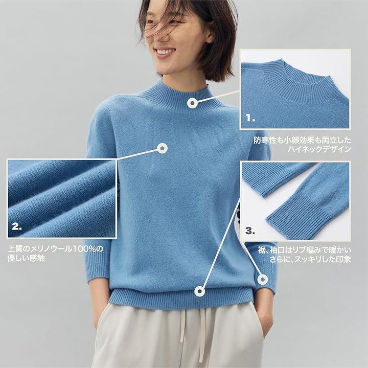 また繊維が細いので、伸縮性があり、身体にフィットしつつも締め付け感がなく、とても優れたハイネックニットとなっています。