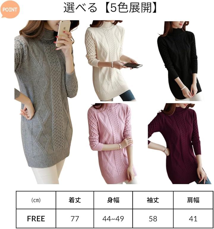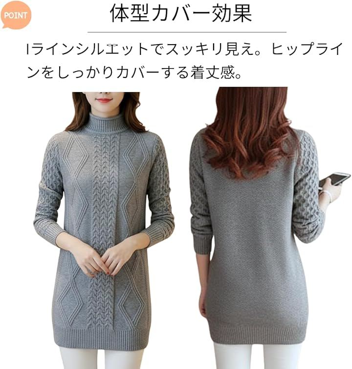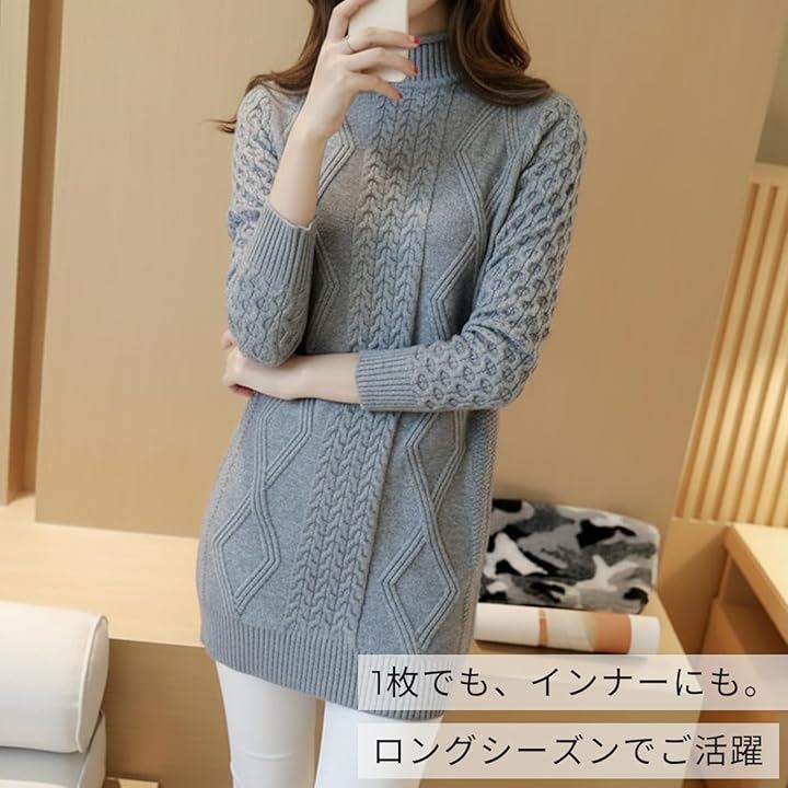 縦のリブや立体的なケーブル編みで着痩せ効果もあり、360度美しいシルエットを実現します。
