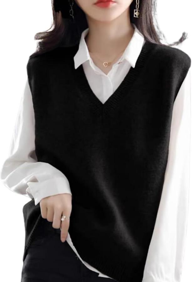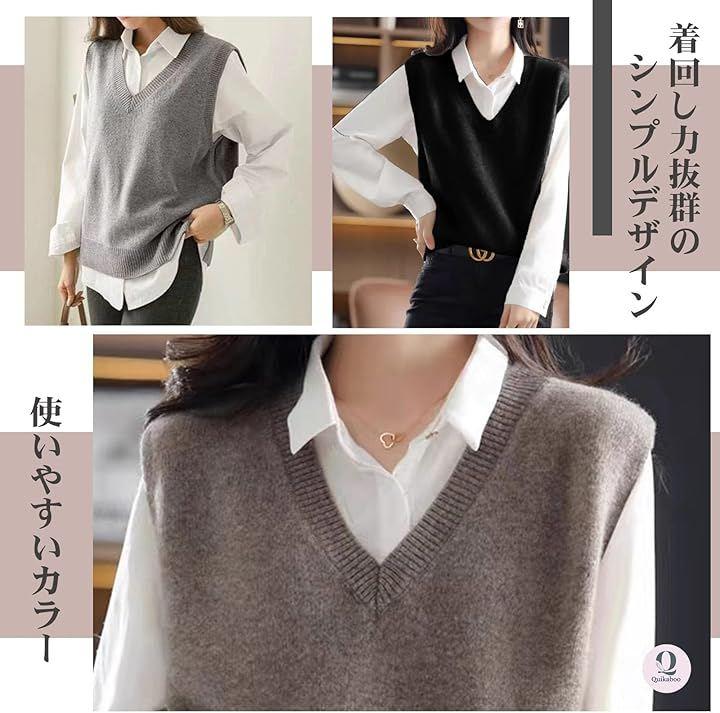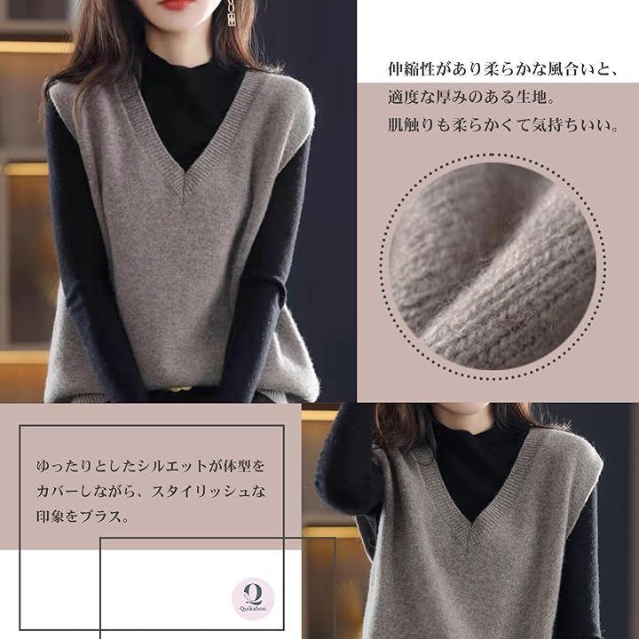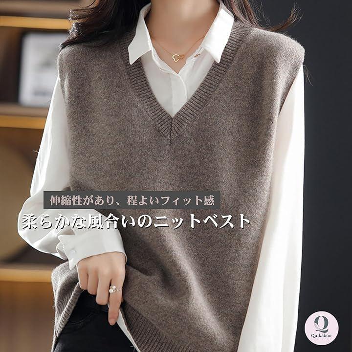 深いVネックが特徴で、シャツやカットソーと合わせたレイヤードスタイルにぴったり。