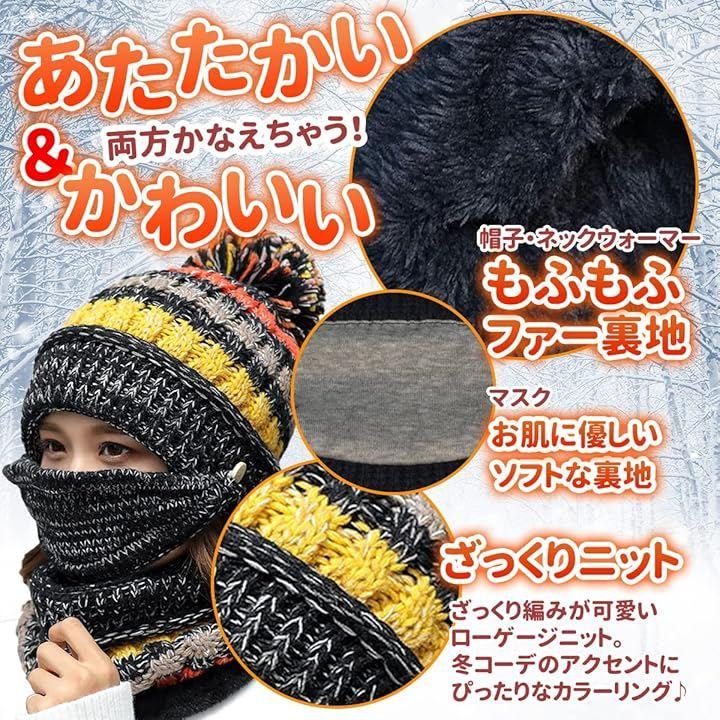 「詳細」ニット帽・ファイスマスク・ネックウォーマー3点分離型。