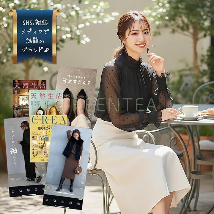 気軽に着られて合わせやすく、レース地のシースルースリーブがさりげない女性らしい魅力を引き出してくれる1着です。