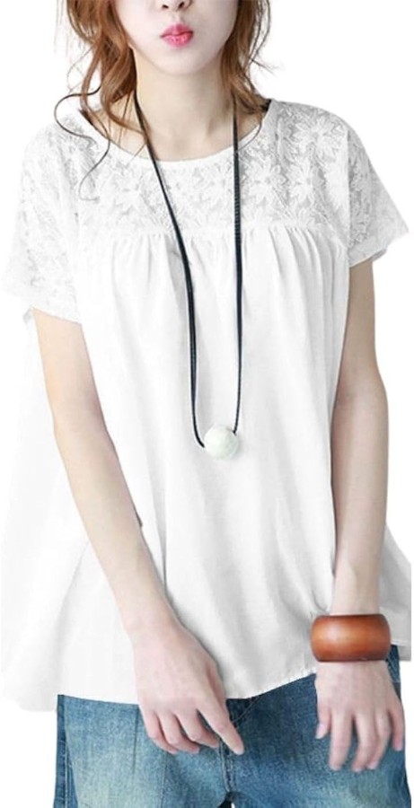「エレガントな花柄レースのトップス」シフォンのナチュラルな雰囲気とレースのやわらかさと落ちつきに加え、程よく上品な大人っぽさのある雰囲気に仕上げた一着。