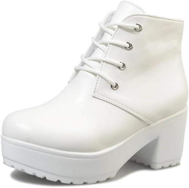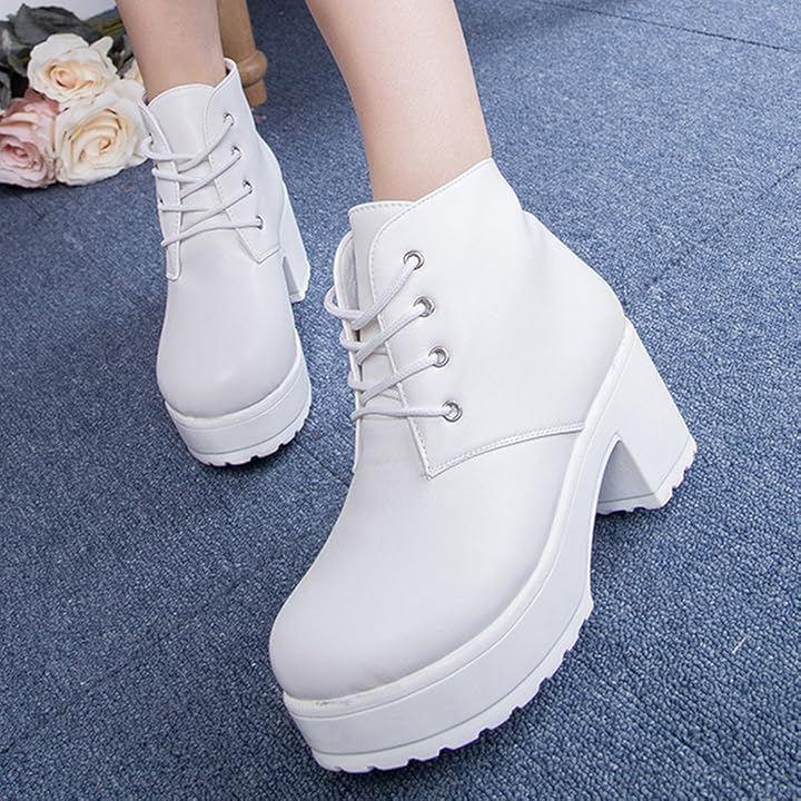 Beaumens(ビューメンス)厚底ショートブーツ太ヒールレディースシューズ靴2カラー「ホワイト/ブラック」