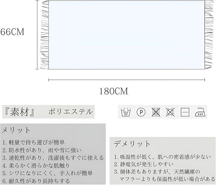 「特徴」幅広な66cmのサイズが特徴で、マフラー以外にもひざ掛けやお昼寝布団・ストールとしてもお使いいただけます。