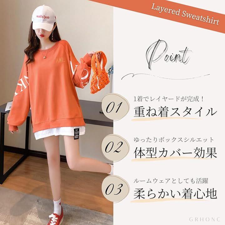 「商品特徴」着るだけで即おしゃれに決まるコーデいらずの重ね着風トレーナーが5色展開で登場。1着でトレンドライクなレイヤードスタイルが簡単に完成するフェイクレイヤードプルオーバーです。
