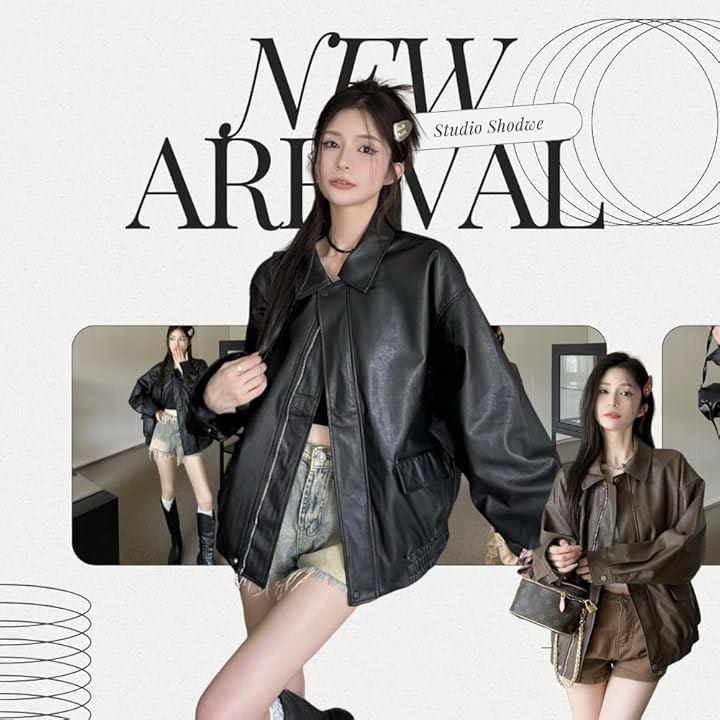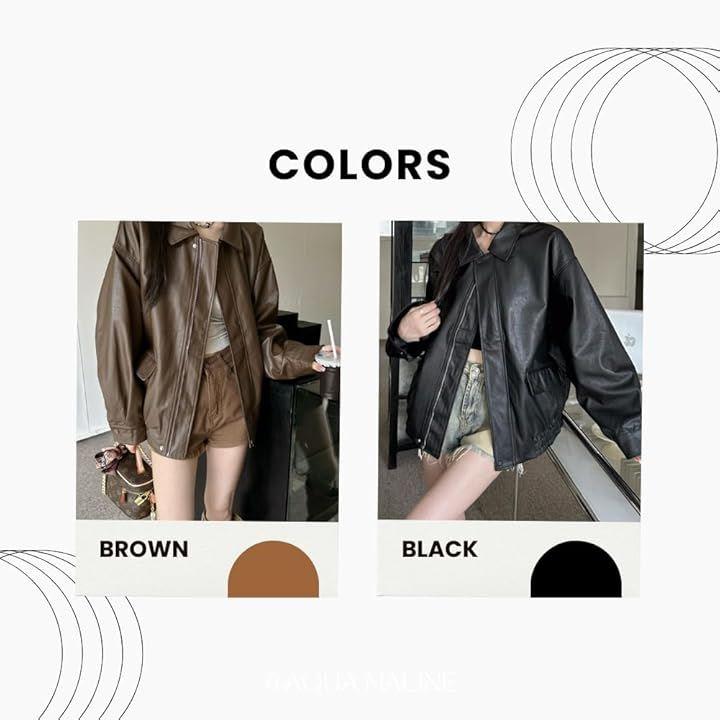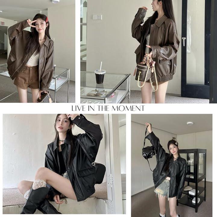 Women's Leather Jacket, PU Leather, Oversized Blouson, Loose Fit, Stand Collar, Elegant Casual, Korean Style, Spring/Autumn
