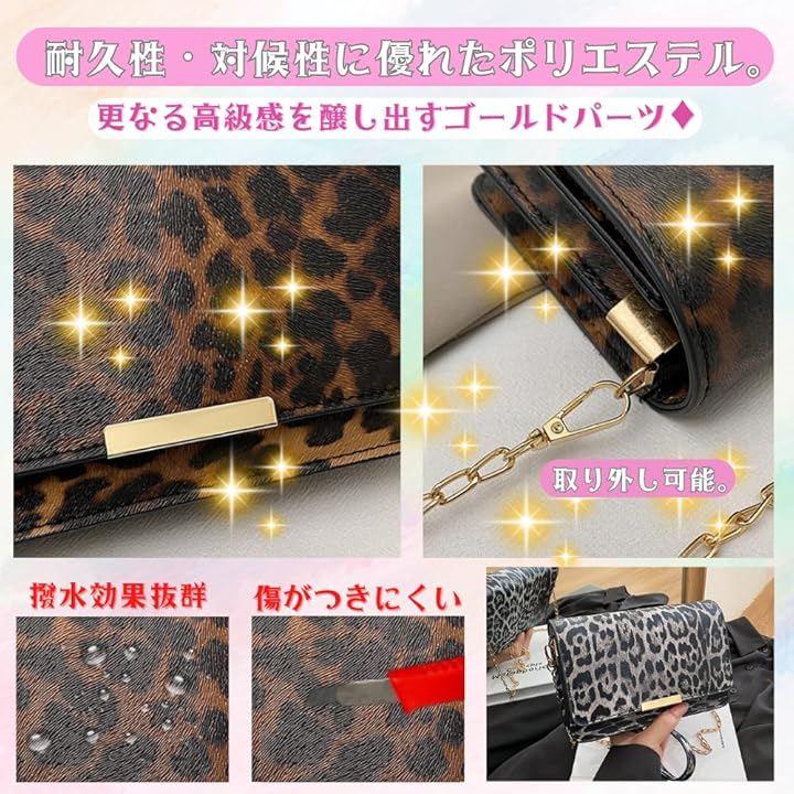 エレガントなヒョウ柄がアクセント。2つのポケットで抜群の収納力を誇ります。