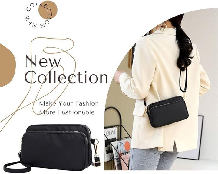 Women's lightweight nylon shoulder bag with water-repellent finish and zipper pocket.
