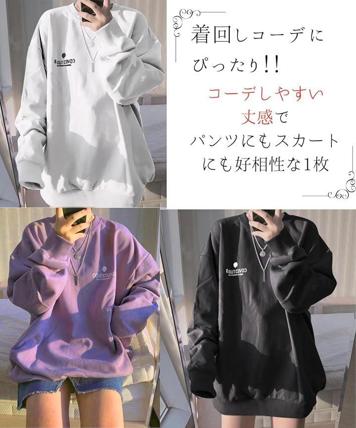 「ゆったり着られる。シンプル可愛いロングトレーナー」「トレーナー レディース 薄手 スウェット」は、ゆったりとしたシルエットが魅力のロングTシャツタイプのスウェット。