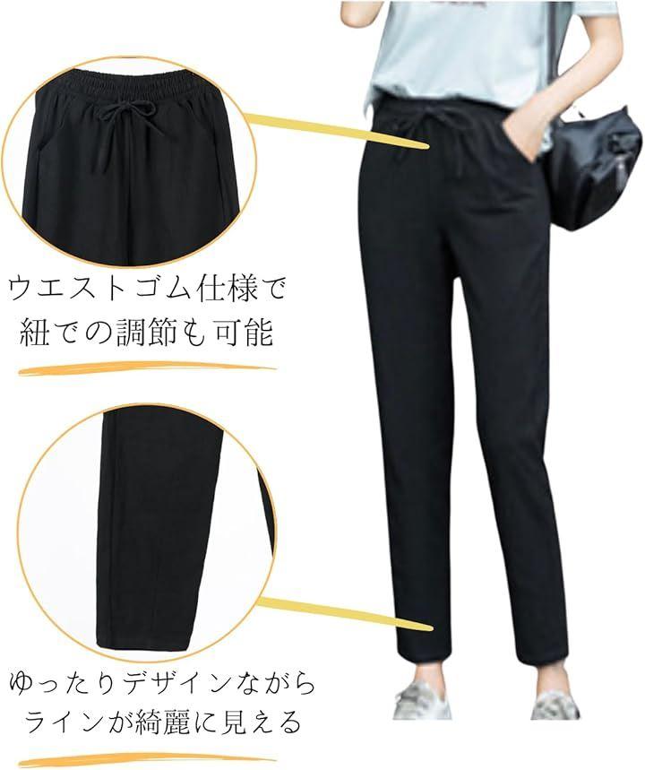ウエストゴムパンツ レディースに調節可能な紐付きで、動きやすさも抜群。