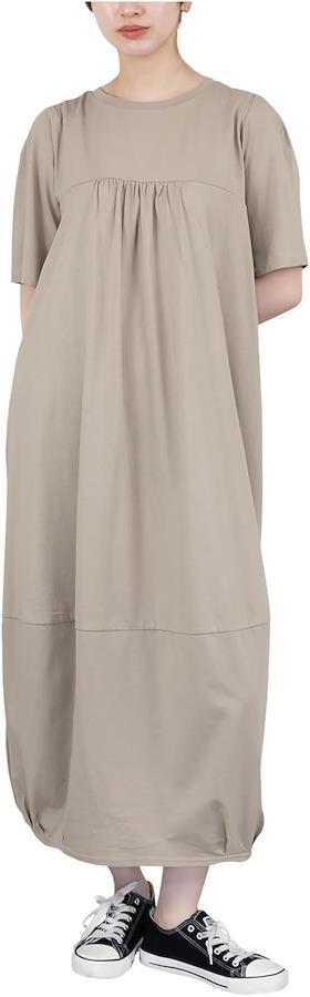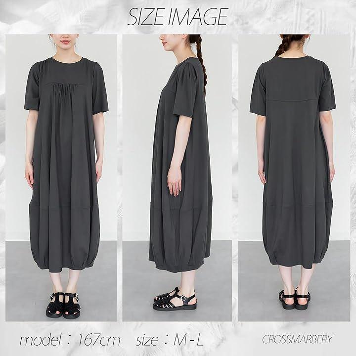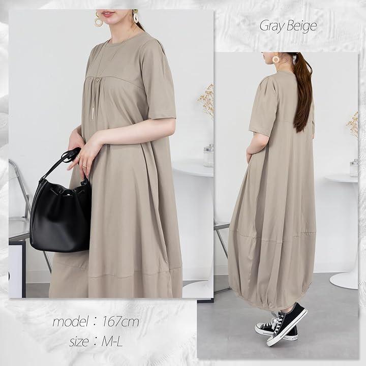 半袖デザインでロングシーズン着回しやすく、カジュアルからきれいめまで幅広いスタイリングに対応するロングワンピース。