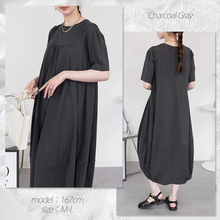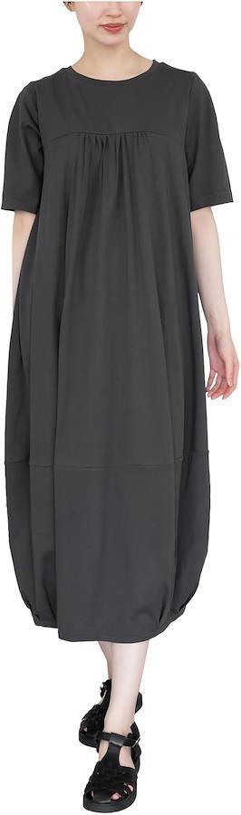 オンオフ使えてコーデの幅が広がる半袖バルーンロングワンピース。