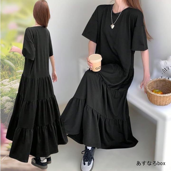 シンプルでありながら存在感を放つブラックのティアードロングワンピースは、一枚で完成された着こなしを叶えてくれるアイテムです。