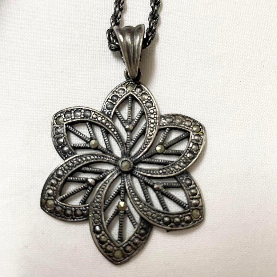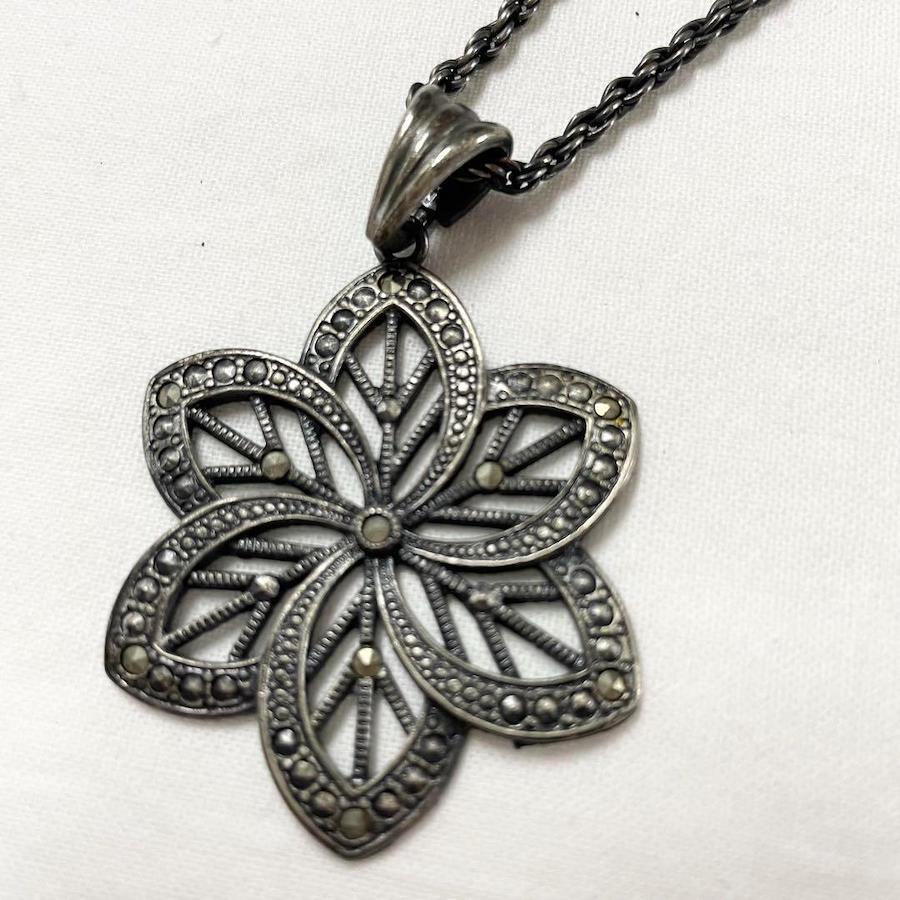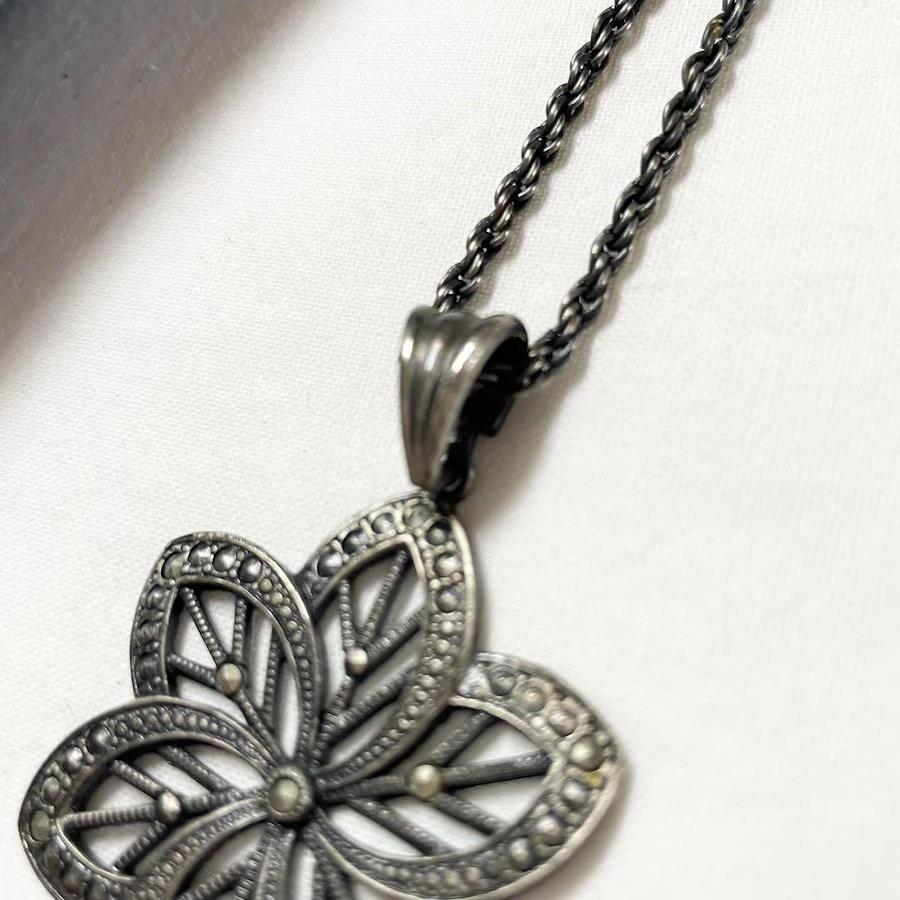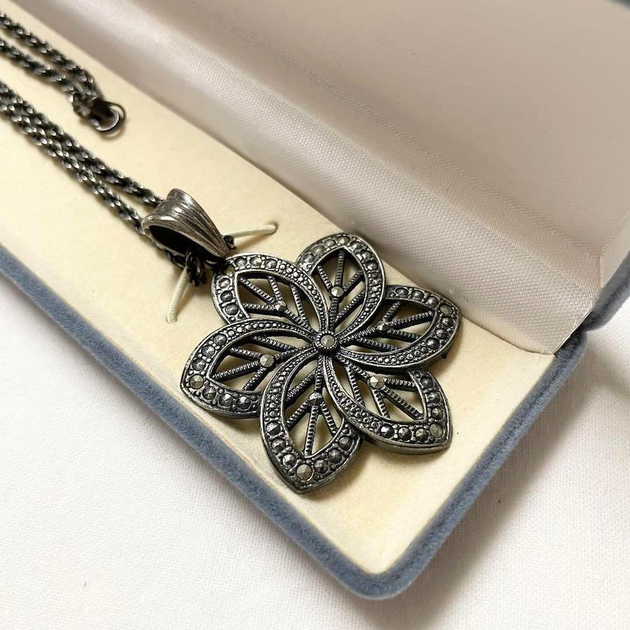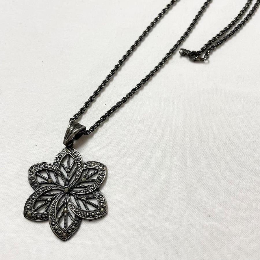 ネックレス ロング 花 レディース ヴィンテージ アンティーク調 細工 花型