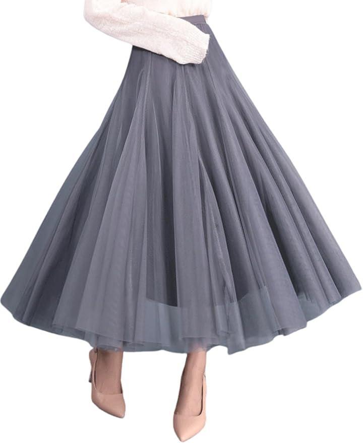 Women's Long Knee-Length Tulle Skirt, Plus Sizes, Loose Fit, Fluffy, Lined, Opaque, Lace, Ruffles, Perfect for Concerts