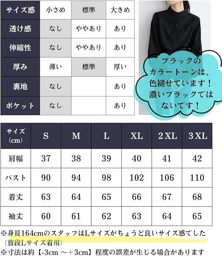 「サイズ&素材」Sサイズ:肩幅 約37cm/バスト 約90cm/着丈 約63cm/袖丈 約60cm Mサイズ:肩幅 約38cm/バスト 約94cm/着丈 約64cm/袖丈 約61cm Lサイズ:肩幅 約39cm/バスト 約98cm/着丈 約65cm/袖丈 約62cm XLサイズ:肩幅 約40cm/バスト 約102cm/着丈 約66cm/袖丈 約63cm 2XLサイズ:肩幅 約41cm/バスト 約106cm/着丈 約67cm/袖丈 約64cm 3XLサイズ:肩幅 約42cm/バスト 約110cm/着丈 約68cm/袖丈 約65cmサイズは全て平置きで測定しております。