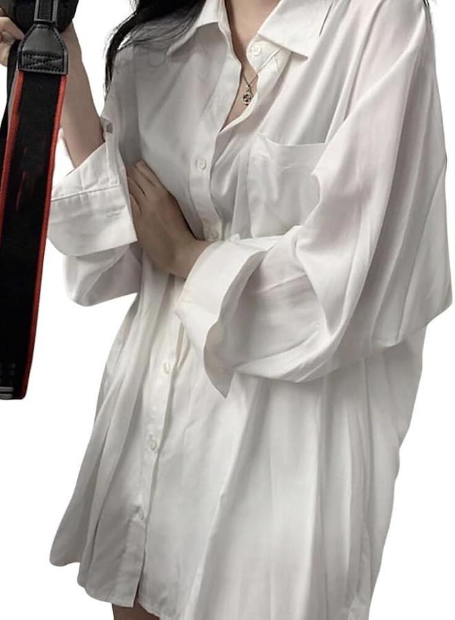 Women's long sleeve cardigan shirt with chest pocket, one size