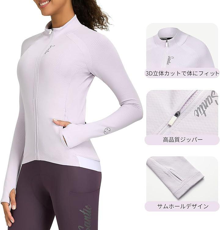 前傾姿勢や腕を前に伸ばす自転車を考慮し、背中を長くなって、肩周りをストレッチに作られています。
