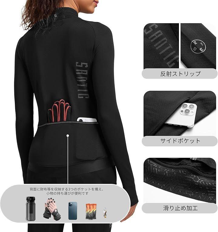 前傾姿勢や腕を前に伸ばす自転車を考慮し、背中を長くなって、肩周りをストレッチに作られています。