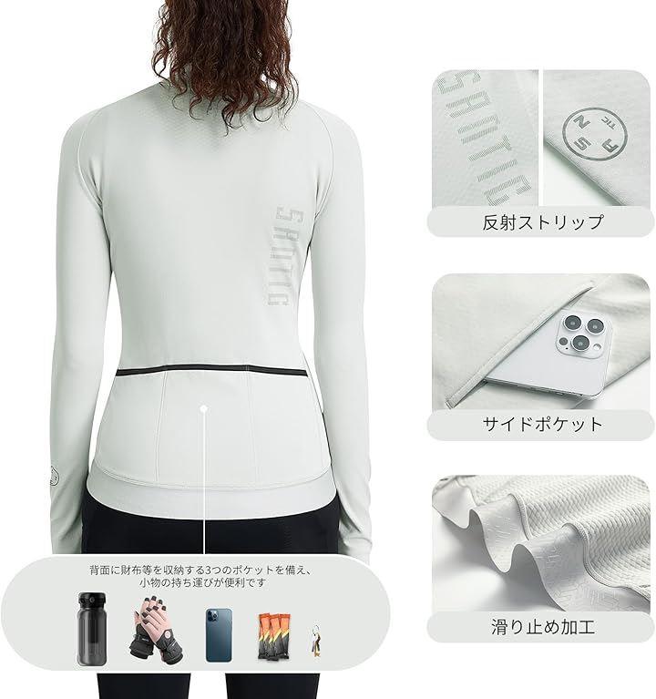 前傾姿勢や腕を前に伸ばす自転車を考慮し、背中を長くなって、肩周りをストレッチに作られています。