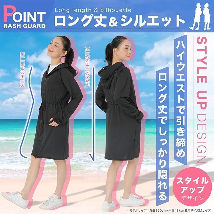 ラッシュガード レディース 丈長め 顔まで ジップ つば付き 日焼け防止 速乾 通気性 ロング 長袖 UVカット 体型カバー 水着 フード