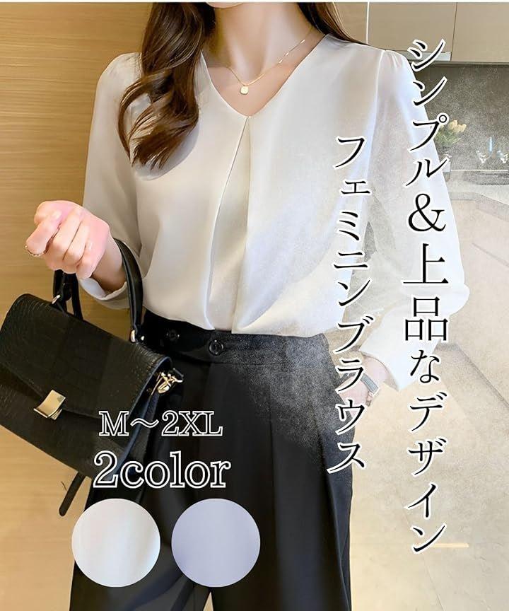 「Vネックで小顔効果&洗練された印象」顔まわりをすっきり見せるVネックデザインが特徴。